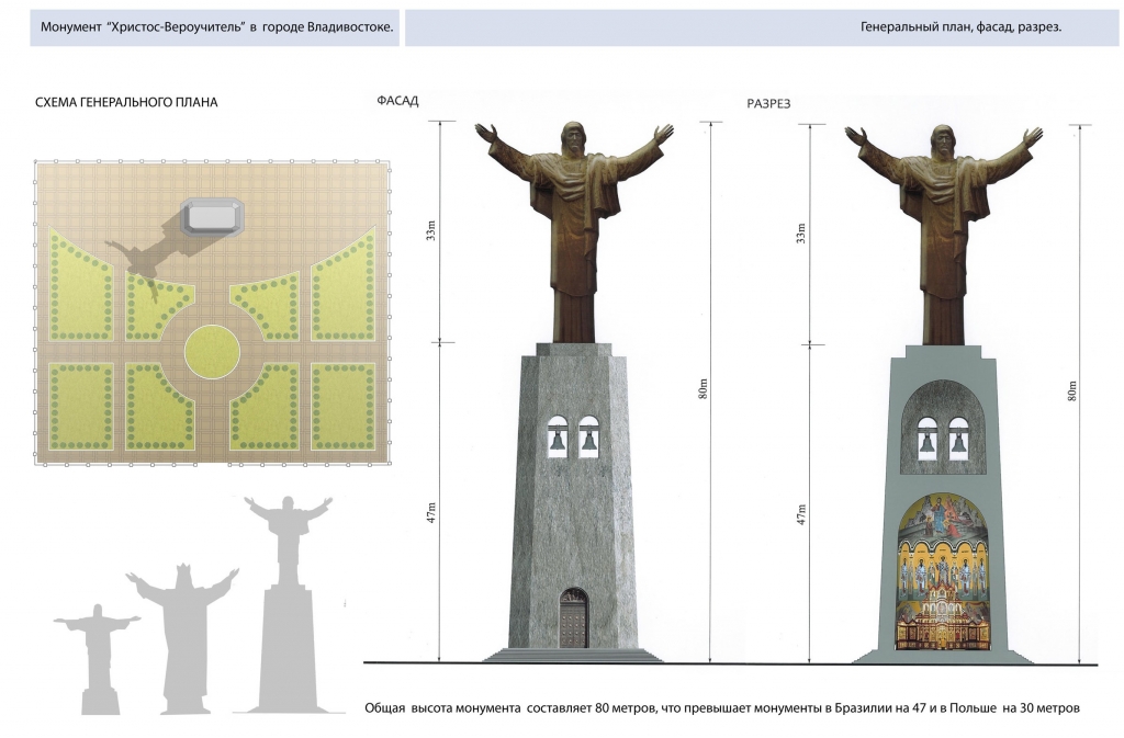 В частности отмечается, что эта статуя Иисуса будет выше, чем в Рио-де-Жанейро и Лиссабоне. Согласно планам, статуя будет иметь высоту 80 метров, и ее строительством вдохновлен местный бизнесмен, который пожертвовал два гектара земли с видом на море. Возможно, статуя будет видна даже в Японии. Поясняется, что гигантский постамент для статуи станет православным храмом.
