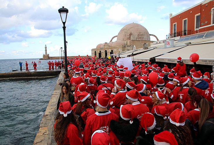 Забег в исполнении бегунов, наряженных в символ Рождества и Нового года – Санта Клауса, состоится в рамках мероприятия Santa Run Chania, которое проводится в одном из крупнейших городов острова Крит вот уже шестой год подряд.