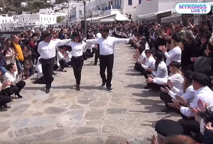 Хасапико входит в число популярнейших танцев среди греков, но при этом незначительно отличается числом и сложностью движений в зависимости от региона исполнения. Миконосская разновидность хасапико считается одной из самых сложных в стране, и более сотни участников феерии собравшихся в воскресный день в портовом районе Миконоса смогли оценить это лично.