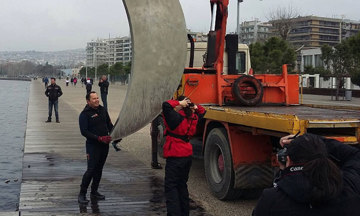 Специалисты в аквалангах для начала нырнули в воды залива Термаикос, чтобы определить, где находится «луна», а затем закрепили ее к специальному тросу крана, который ждал на набережной. Вся операция длилась около получаса.