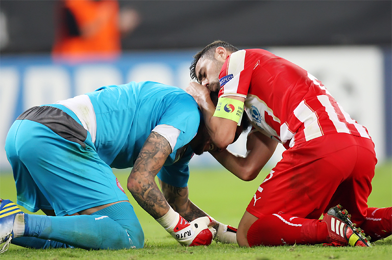 Специалисты отмечают классную игру голкипера «Олимпиакоса», испанца Роберто, который, как пишут спортивные газеты, отомстил всем тем, кто на Пиренейском полуострове считал его «отрезанным» для спорта «ломтем».