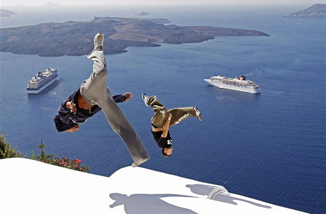 На 29 сентября назначены «показательные выступления» лучших спортсменов мира в Freerunning и паркуре – зрелищном и невероятно сложном искусстве преодоления препятствий, требующем безупречного владения своим телом. Выступления на фоне вулкана Санторини и его неповторимой кальдеры состоятся в рамках Фестиваля Red Bull Art of Motion, на который съедутся со всего мира любители экстремальных видов спорта. Картины и репортаж с Фестиваля по спутниковому телевидению будут переданы во все страны мира.