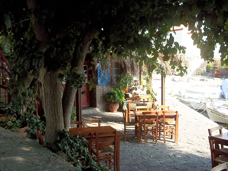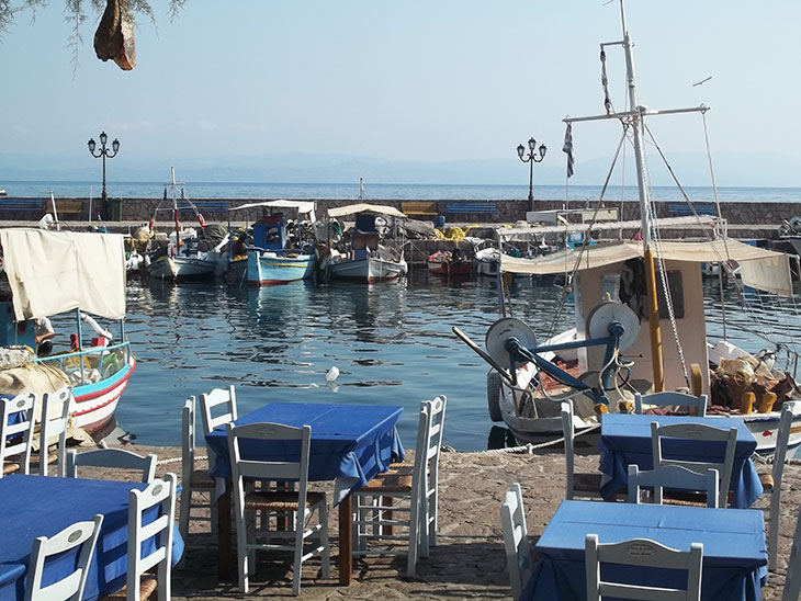 Лесбосе, а точнее в небольшой рыбацкой деревушке острова под названием Скала Скамиас.