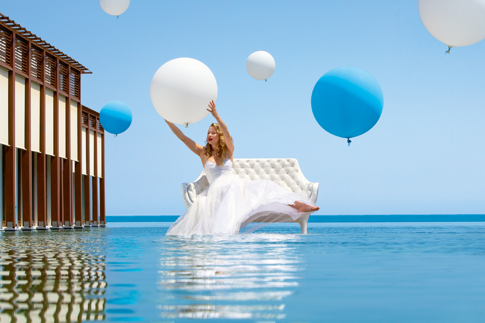 в белоснежном шатре. При этом шатер может быть установлен на пляже, на вилле или у бассейна.