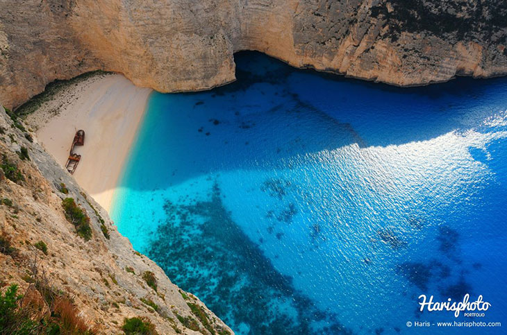Визитная карточка остров Закинф, бухта Навайо поражает своей красотой каждого, кто здесь оказывается. Стоит ли говорить о впечатлениях при взгляде на нее из под облаков?!