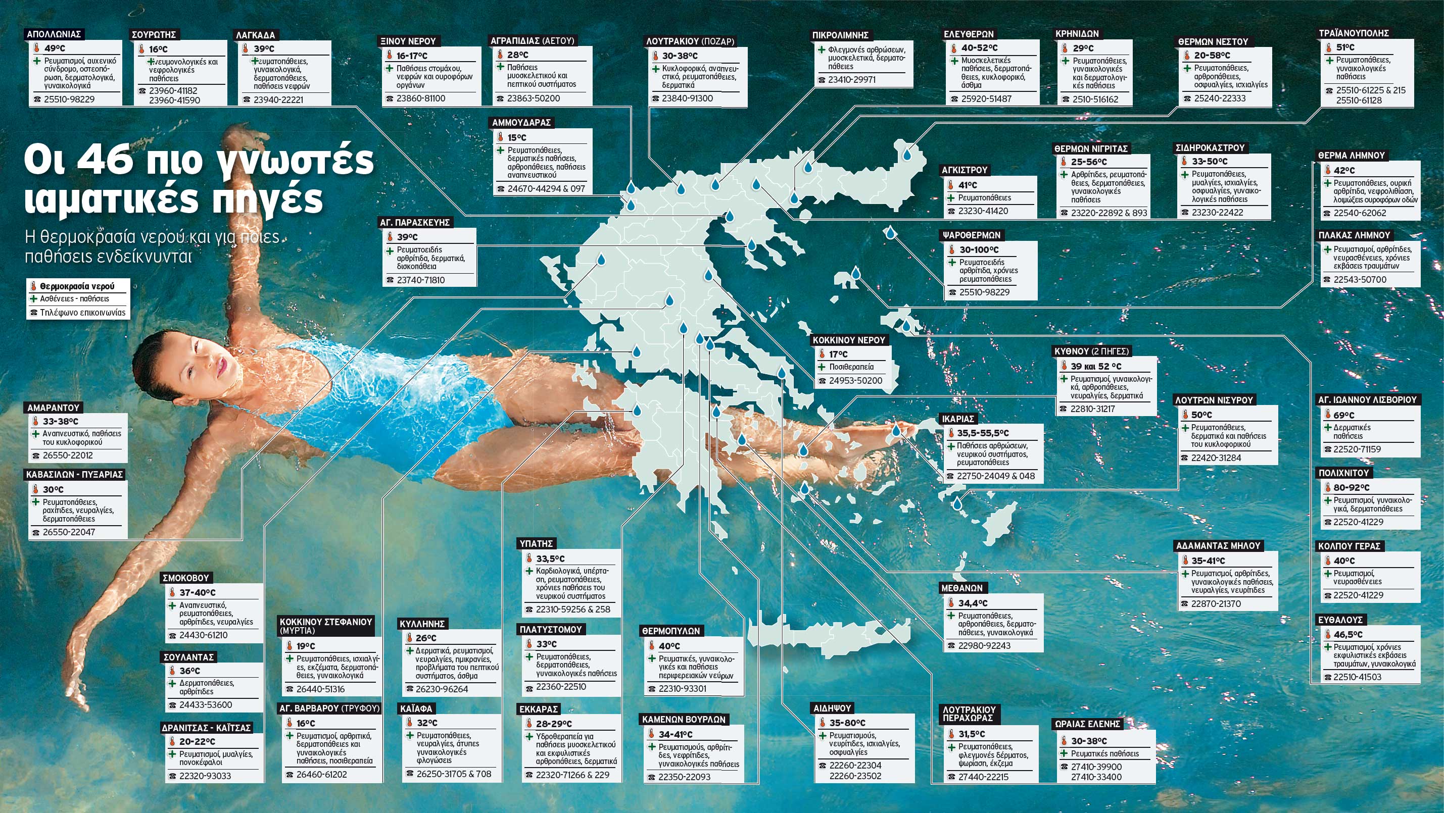 Таким образом, географическая карта термальных вод в Греции с каждым годом пополняется, а районы, где располагаются эти целительные источники, могут рассчитывать на скорое туристическое развитие. Особенно это касается незаслуженно обходимых до сих пор вниманием туристов и инвесторов острова Эвбея и периферии Эпира.