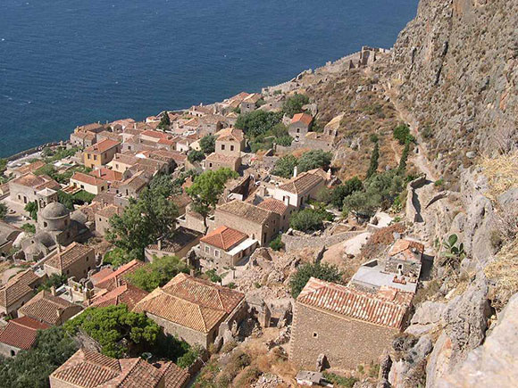 в то время как Монемвасия упоминается, как место с хорошо сохранившимися византийскими замками, традиционными церквями и вымощенными камнем улицами.