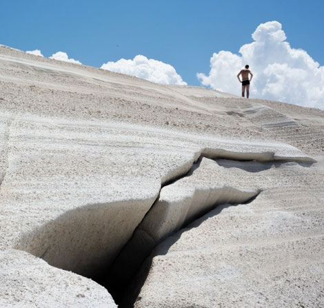 Правда в том, что пляж Саракинико на острове Милос в Греции напоминает лунный пейзаж, подчеркивает travel blogger Матиас Кагьоне, и добавляет, что пляж «в окружении белых камней вулканического происхождения, напоминает необычный и удивительный лунный пейзаж".