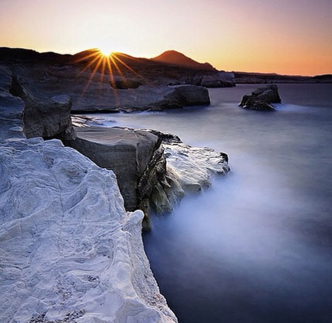 «Море встречается с вулканическими породами и волны ласкают их в течение тысячелетий, создавая один из самых чистых пляжей в мире», говорит журналист- путешественник, который знакомит свих испанских читателей с необычным пляжем Саракинико, находящийся на севере острова Милос в Эгейском море.