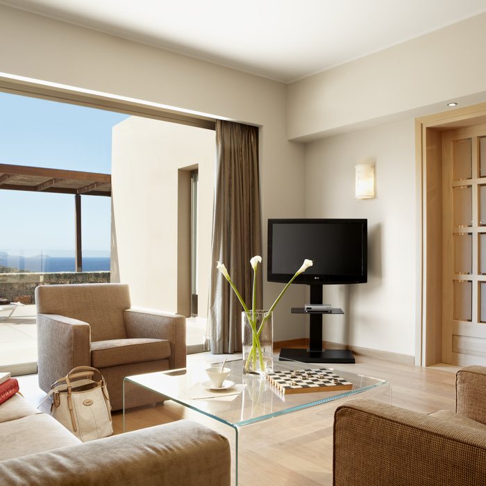 Виллы и апартаменты отеля Daios Cove Luxury Resort & Villas так гармонично вписываются в местный ландшафт, что издали кажутся единым целым с живописным холмом, созданным по прихоти природы.