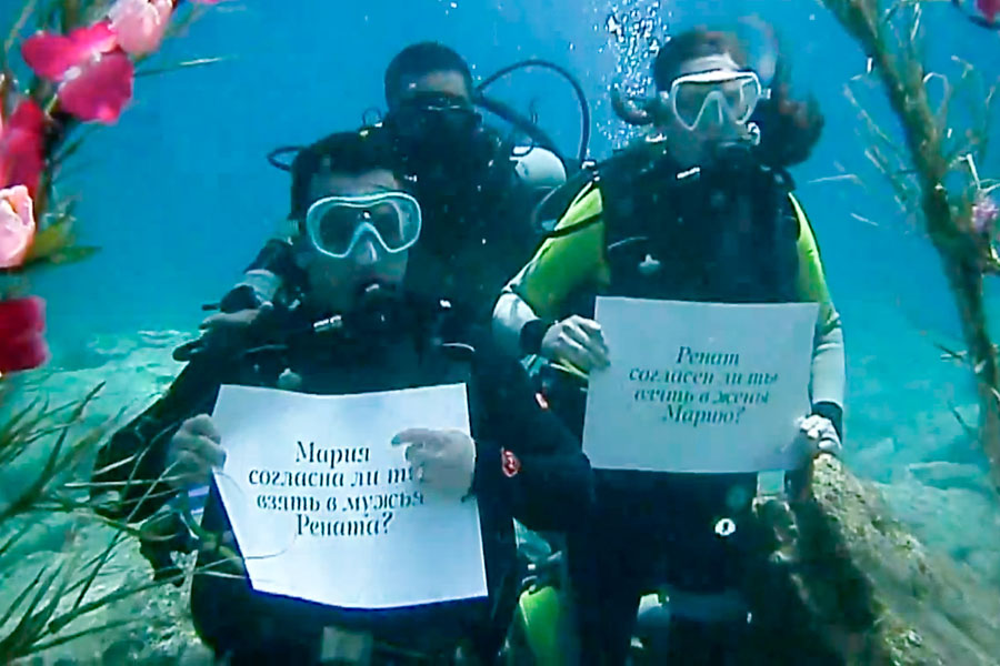 Пара из Саранска – Ренат и Мария, на своей дайвинг-свадьбе погрузились на дно Ливийского моря и были благословлены самим «Посейдоном».