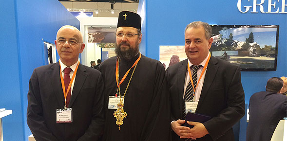 В общем павильоне Греческой Организации по Туризму, в специально оформленном отсеке располагались стенды митрополий Элладской Церкви. Цель присутствия – продвижение общими усилиями Греции как важнейшего паломнического направления.