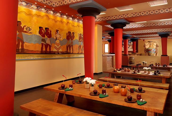 Персонал отеля позаботился о кроватях разных размеров для детей любого возраста, поэтому «тихий час» всегда проходит с большим комфортом. На стенах комнаты изображены минойские персонажи и, кажется, они напевают песни и тихо нашептывают о тайных секретах минойской эпохи.