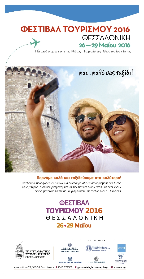 Профессиональная палата города Салоники во 2-й раз организует Туристический фестиваль 26-29 мая 2016 на Новой городской набережной, стремится создать удивительное событие, которое останется в качестве точки отсчета для Салоник, индустрии туризма и рынка.