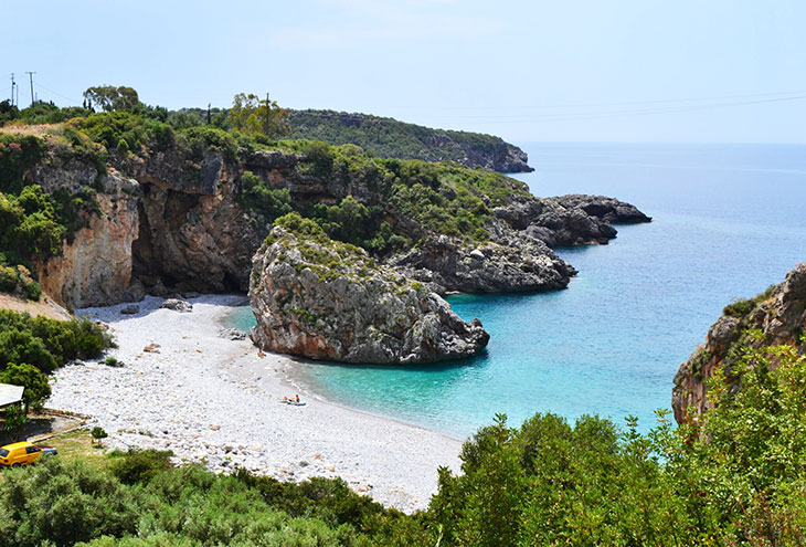 Однако, несмотря на ужасающее название, Фонеас - один из самых красивых пляжей на Пелопоннесе. Это галечный пляж с кристально чистой водой и зеленым природным ландшафтом с окружающими его скалами.
