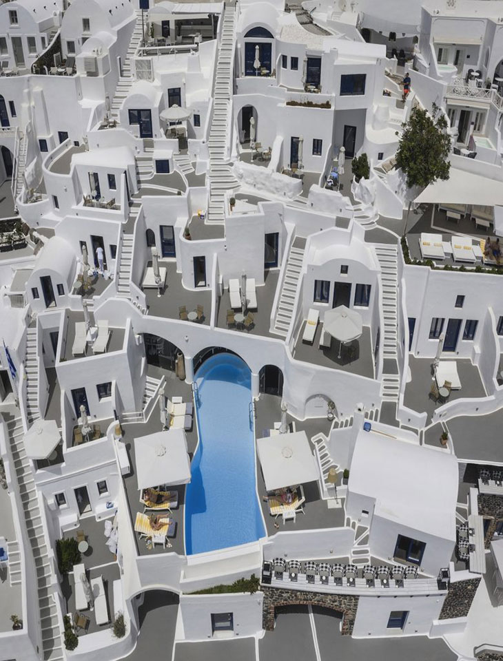 Его «Абстрактная Греция» отображает красоту легендарного греческого острова Санторини, одного из самых популярных туристических направлений в мире. Знаменитая белоснежная архитектура, построенная вдоль пологого побережья острова, образует абстрактный узор сверху, усеянный загорающими туристами.