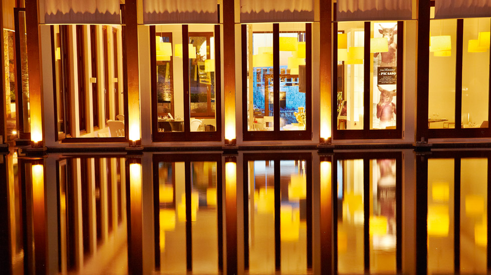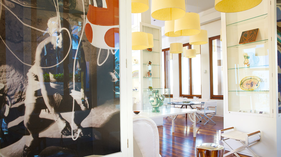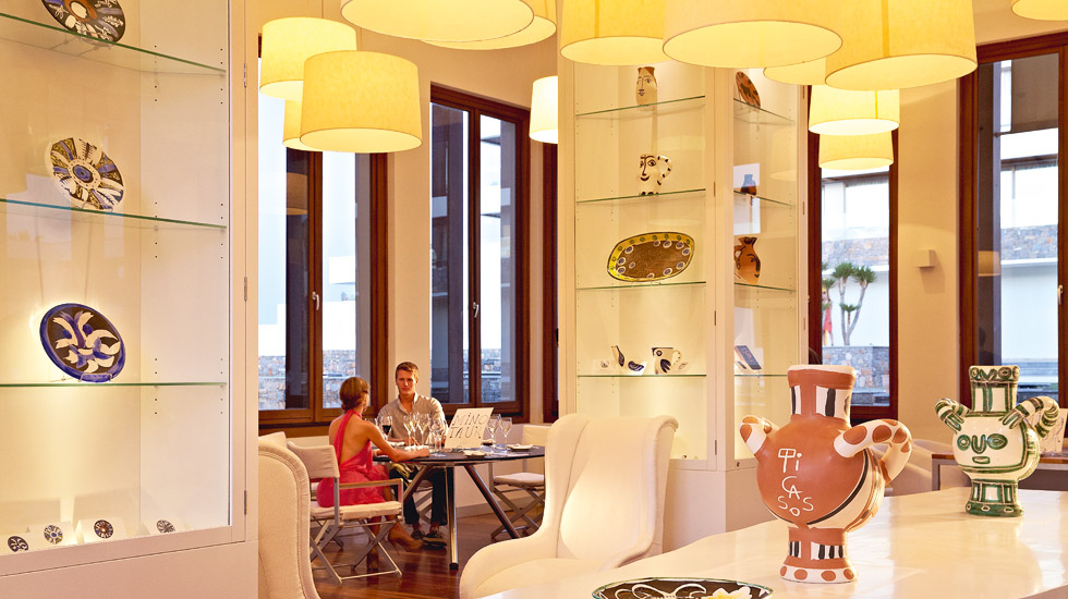 В 1950 году обнаженный по пояс художник приложил к своей голове огромную голову быка, сплетенную из прутьев, и так сфотографировался. Теперь подобные фотографии – тоже часть интерьера ресторана Minotaur. Здесь же представлены оригиналы керамики Пикассо – вазы, блюда, тарелки и кувшины.
