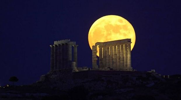 Reuters описало впечатляющую луну, которая купается в свете храма Посейдона на мысе Сунион. Международное информационное агентство было очаровано красотой полной луны и тем, как она сочетается с колоннами древнего храма.