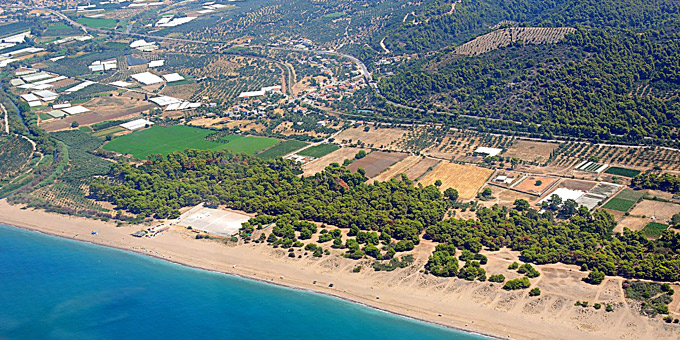 Пляж: По существу, это начало обширного красивого пляжа, который афиняне называют "Каиафа", а пелопоннесцы "Пляж Башни", который тянется на пятьдесят километров. Мягкие золотые пески, дюны с белыми лилиями, бирюзовое Ионического море и красивый сосновый лес.