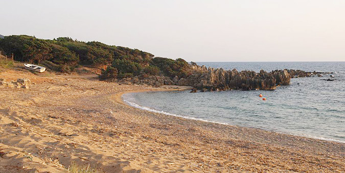 Пляж: Это один из немногих «секретных» пляжей. Зеленая рамка из густых деревья вокруг имеет прекрасный контраст с синевой воды. Вы найдете золотой песок, следуя по дороге с оливами, рядом с отелем «Колонидес».