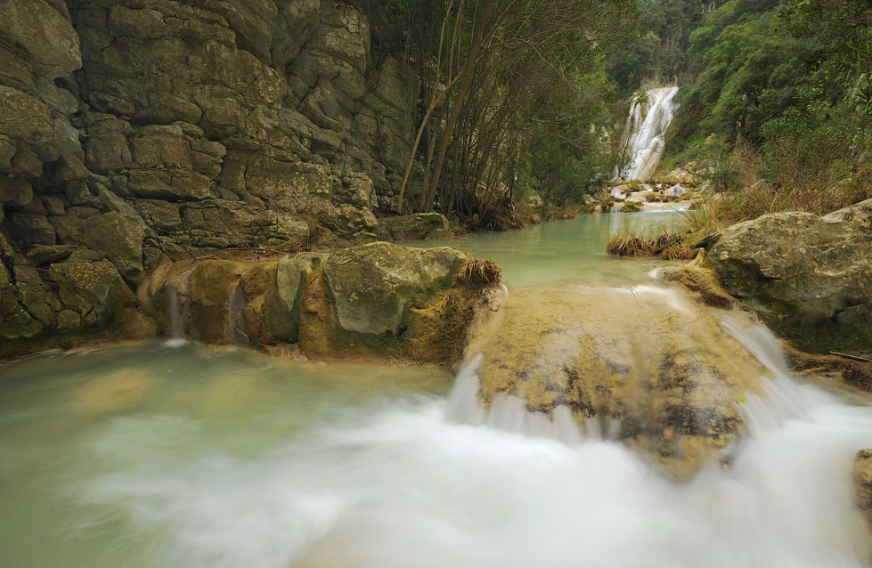 Необыкновенно красоты «Голубая лагуна» захватывает дух. Озера и водопады, которые проходят через ущелье Полилимниу, расположены на многих уровнях.