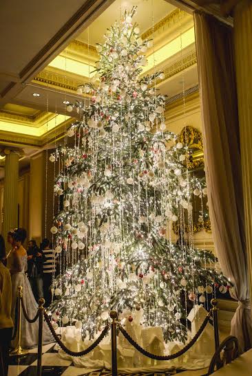 Красивые белые гирлянды от знаменитого французского дома, редкие жемчуга украшений и 2500 тысяч огней, опутывающих очень высокую ель! 600 кружевных новогодних шаров, индивидуально изготовленных вручную от дома Силиас Крифариоти и гирлянды цветных «льдинок» создают уникальное сочетание для элегантной праздничной обстановки.