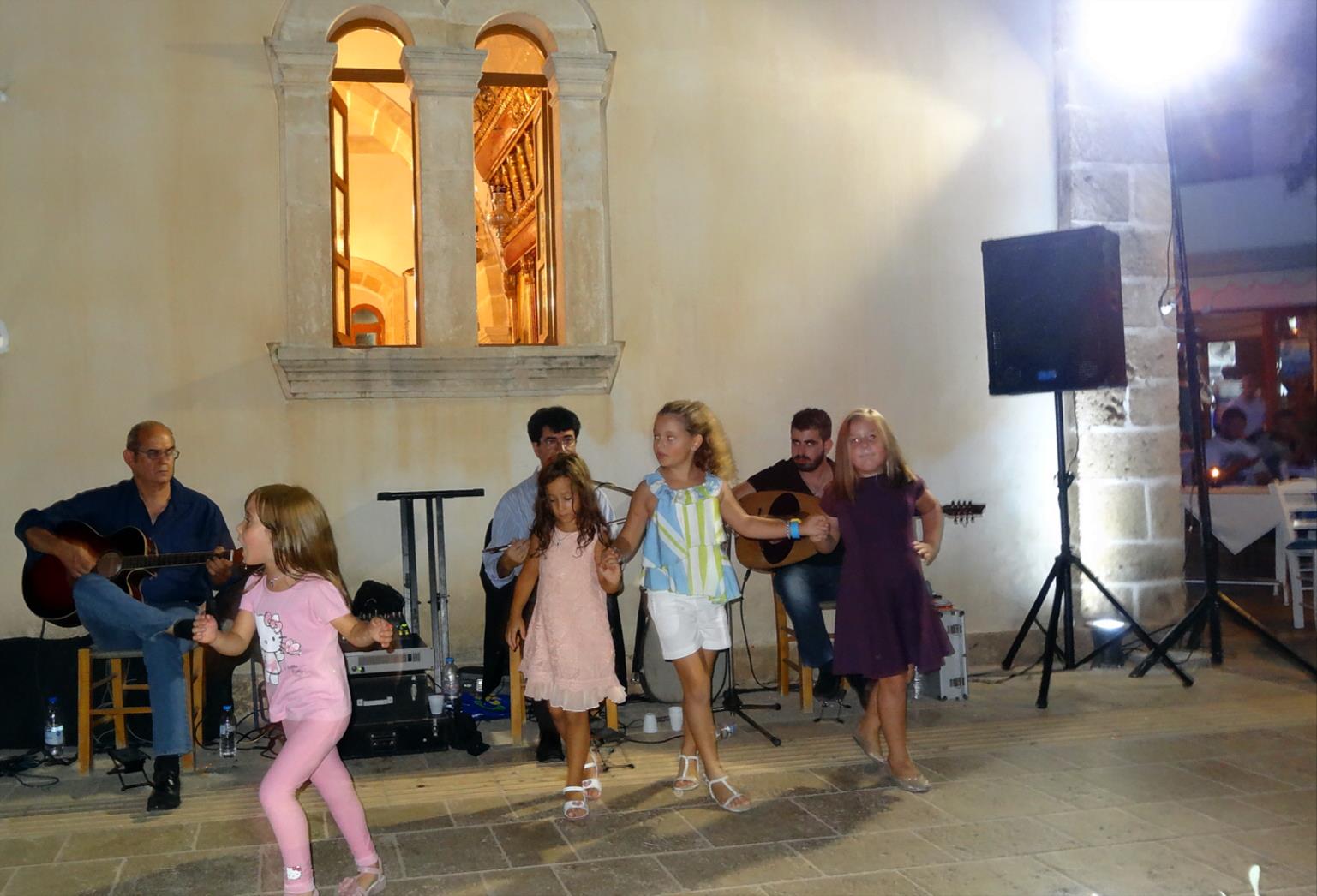 На сцене исполняли греческие песни и танцы, и маленькие танцовщицы не устояли и тоже пустились в пляс.
