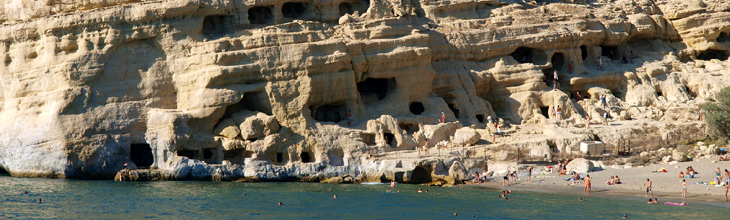 Закрытая естественная гавань в заливе Мессара, покрытая слоем песка и гальки, место, основанное на мифе о том, как Зевс приплыл к берегу в виде быка с Европой на спине. Многие останавливаются на Матале во время отпусков, поскольку она расположена в центре южной части Крита, далеко от городских центров северного побережья. Пляж простилается на 250 метров в длину и на 45 метров в ширину.