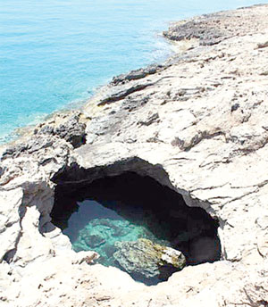 Дно тоже очень красивое и имеет различные цвета. Внутренняя сторона бассейна скрывает невероятную по красоте пещеру с впечатляющими горными породами.