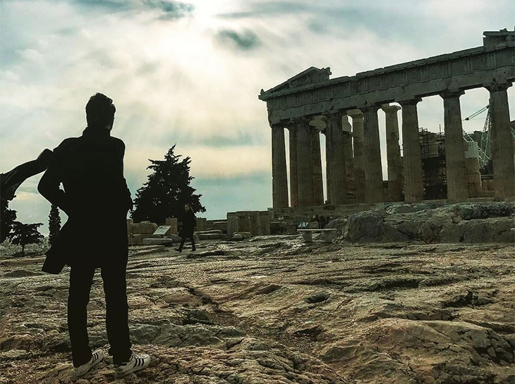 Актер успел попозировать перед камерой во время прогулки по Акрополю и при посещении Национальной Библиотеки, записал видео на фоне развивающегося греческого флага, поделился фото, где он изображен со своими родными, проживающими в Греции, и не только.