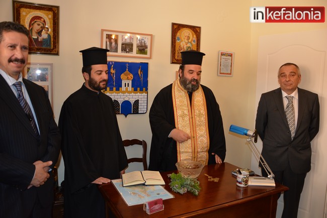 Архимандрит Спиридон Пэтинатос передал благословление митрополита Кефалонийского Спиридона и совершил церемонию освящения Центра.