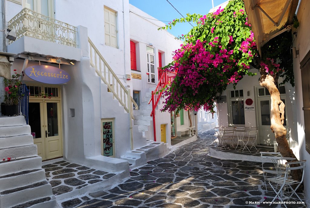 «Побеленные фасады квадратных домов, зовущие Средиземное море, извилистые дороги, дорогие магазинчики и красивые церкви, помогают почувствовать глубину греческих традиций. Остров славится шумными пляжными вечеринками и ночными клубами."