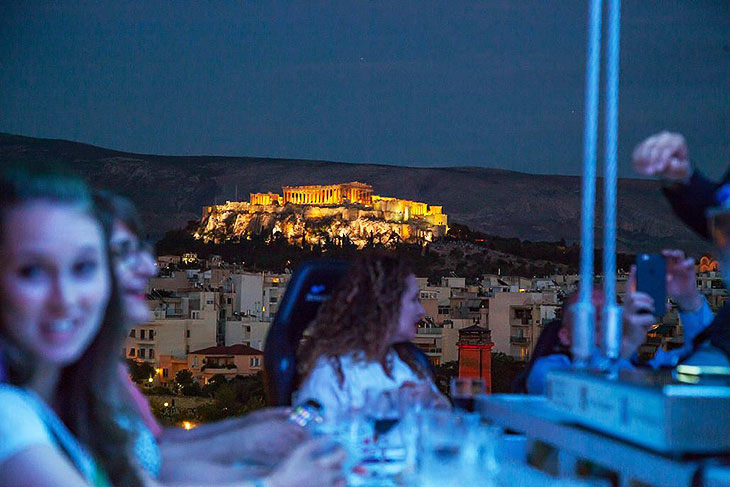 Международный проект, запущенный более десятилетия назад в Брюсселе, сегодня «Ужин в небесах» доступен в 60 странах мира, включая и Афины. И в главном городе Греции он прижился как нельзя лучше, поскольку с парящего в небесах ресторана открывается изумительный вид на Акрополь, холм Ликавитос, а также на обширную территорию от пригорода Афин Пирея до горы Парнита.