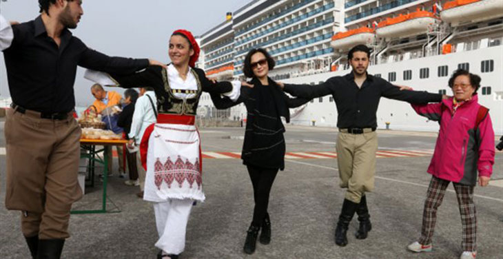 Теплый прием оказан 800 китайским туристам, среди которых журналисты и актеры, прибывшим на круизном судне Costa Atlantica.